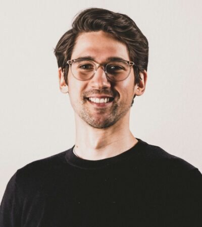 A modern furniture showroom displays a white couch adorned with a decorative red and white pillow. Two brown leather chairs flank the couch, placed on a patterned rug. A square wooden coffee table with a few decorative items sits in the center. The setting is part of a larger showroom with a visible sign above reading 'west'.